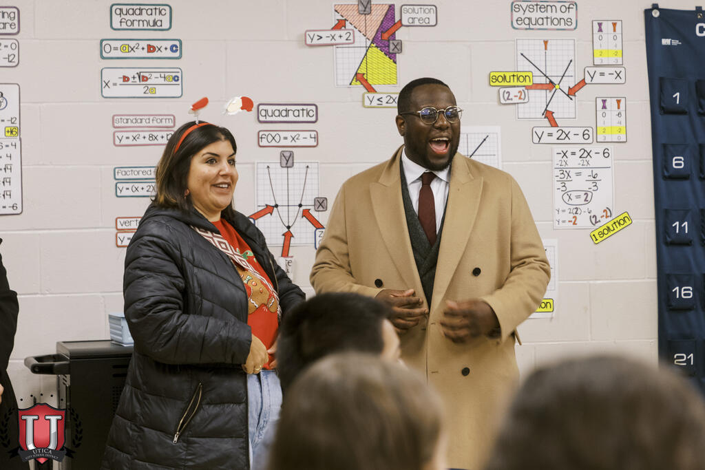 On Friday, Dec. 19, the Utica community came together for a Day of Unity and Achievement across all 13 schools. The celebration recognized student achievement, including strong results on the 2025 NY State assessments. Students enjoyed hands-on activities like gingerbread-themed bouncy houses, arts and crafts and block building. These engaging experiences were designed to stimulate young minds while fostering joy and community. Dr. Spence visited several buildings to see a day in the life of students, while teachers continued delivering engaging lessons and acknowledging their hard work. Local officials and other community members also joined in on the celebration.
