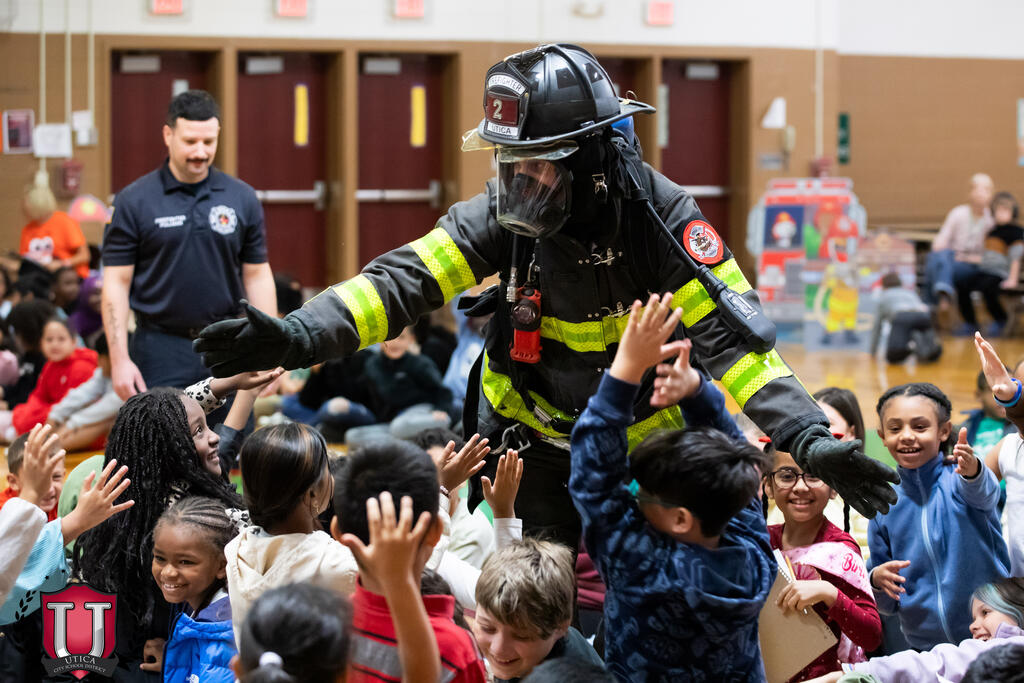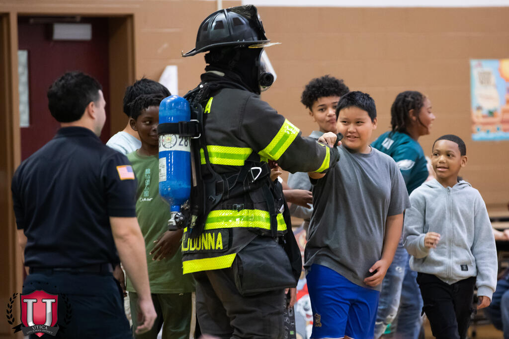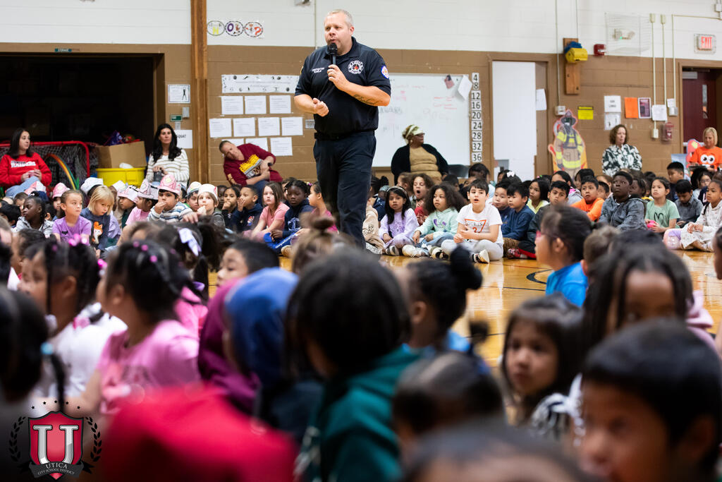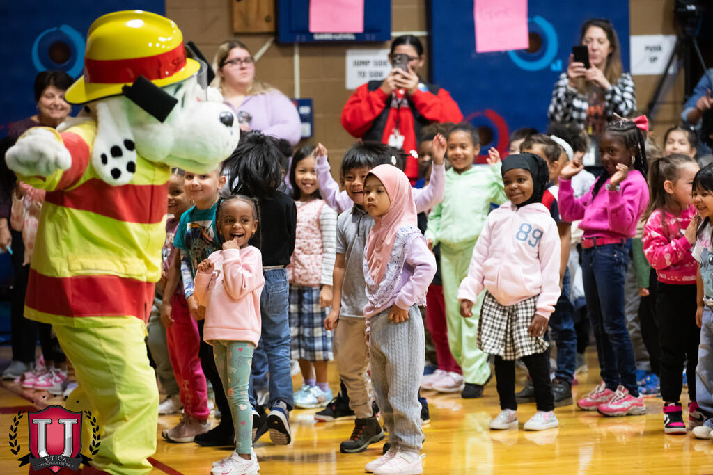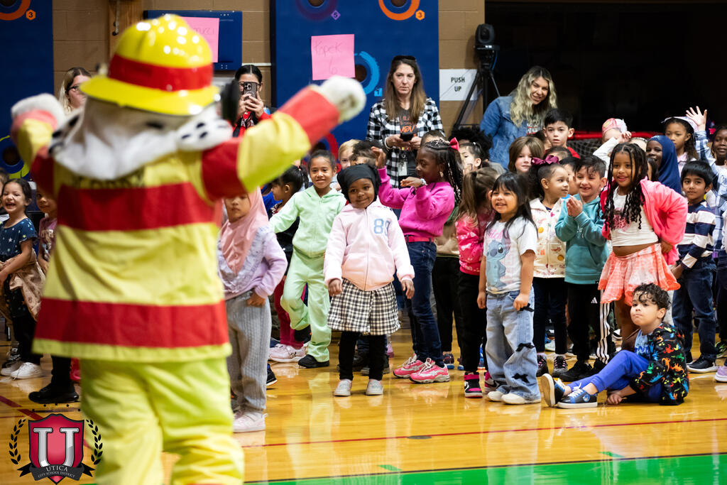 A fire prevention assembly at Columbus Elementary School brought students and firefighters together for an entertaining and informative morning. Complete with puppets, fire hats, mascots and fun, students learned what to do in an emergency fire situation. Members of the Utica Fire Department kept students entertained while tackling a serious subject. The Utica Fire Department protects 63,000 residents within 17.5 square miles, and we are thankful they took time out of their day for this educational program at Columbus