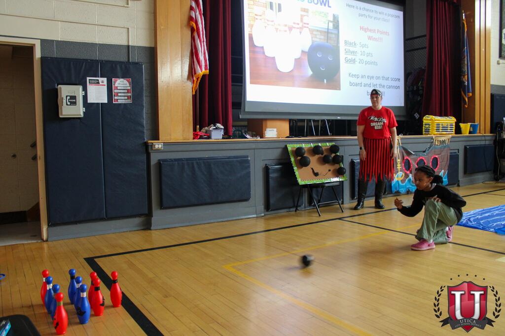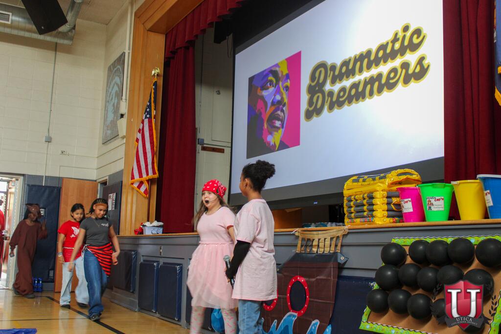 MLK held its annual Test Prep Pep Rally to get students pumped up for New York State testing. Second-grade teachers hosted the pep rally to share tips for taking the test and the MLK Dramatic Dreamers Drama Club performed a short skit on doing their best. Students were also reminded of the importance of being on time, getting enough rest and eating a good breakfast. The pep rally also featured fun twists like teachers “walking the plank,” a friendly bowling competition and a balloon pop. MLK strongly believes in reminding students to do their best and represent themselves and their school. Thank you to Mrs. Miller, AIS coordinator, for supplying a “Woot-Woot!” snack and beverage cart for testing proctors.